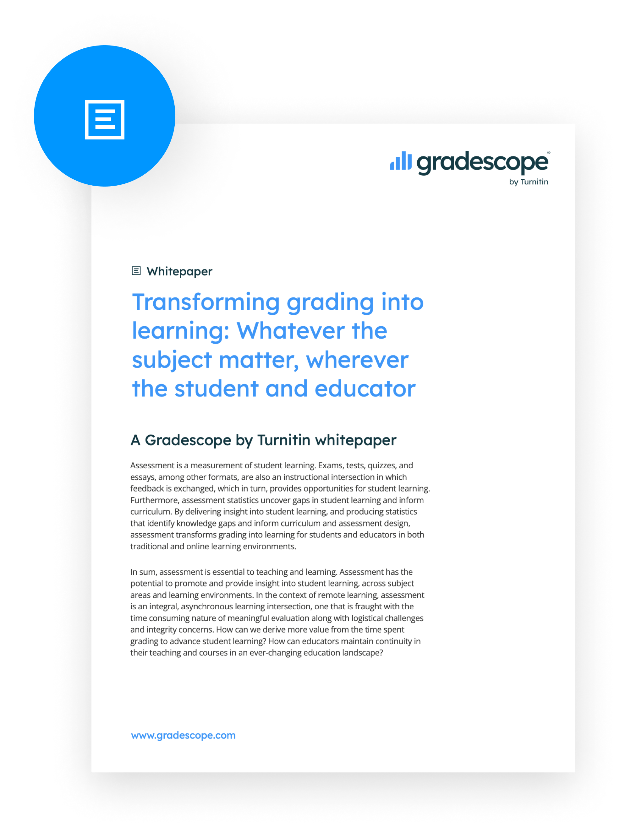 Transforming grading into learning: Whatever the subject matter, wherever the student and educator